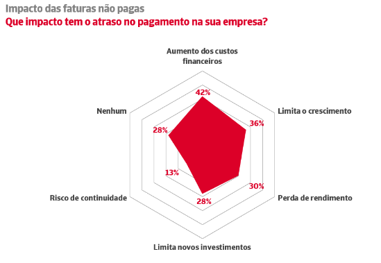 De acordo com o Estudo de Gestão de Risco de Crédito em Portugal, 42% das empresas portuguesas regista um aumento dos custos financeiros em resultado da morosidade e 36% é obrigado a travar a sua expansão comercial. Além do mais, 30% das empresas enfrenta perdas de rendimentos significativas e 28% tem de limitar os seus novos investimentos.
