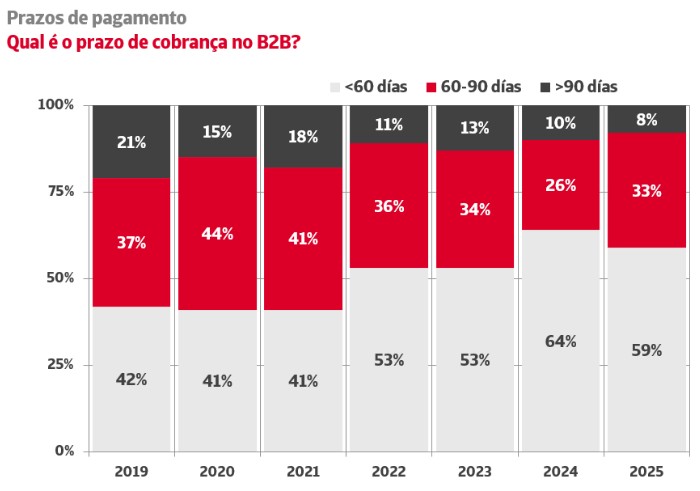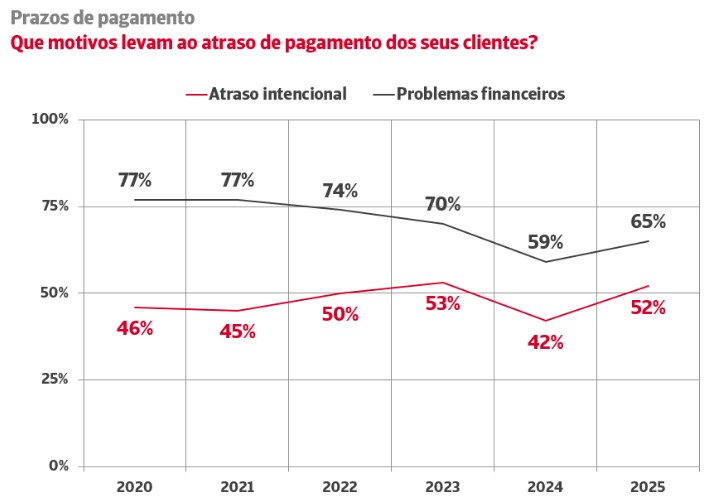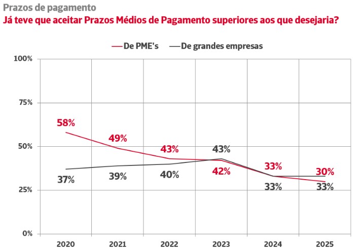Pela primeira vez desde a pandemia, aumentou a imposição de prazos mais amplos por parte das PME. As Grandes Empresas também evidenciaram um agravamento do seu comportamento com os clientes em 2025.