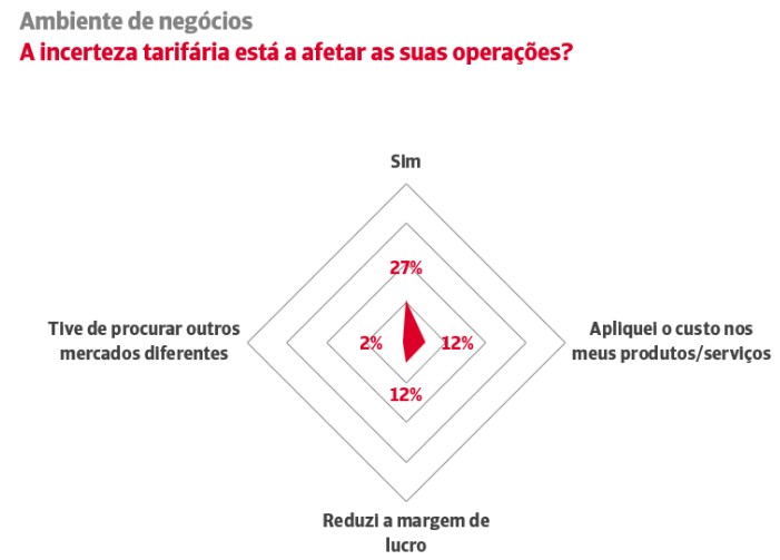 27% das empresas dizem que estão a sofrer os efeitos da guerra comercial que está a impactar o custo de seus produtos e as margens.