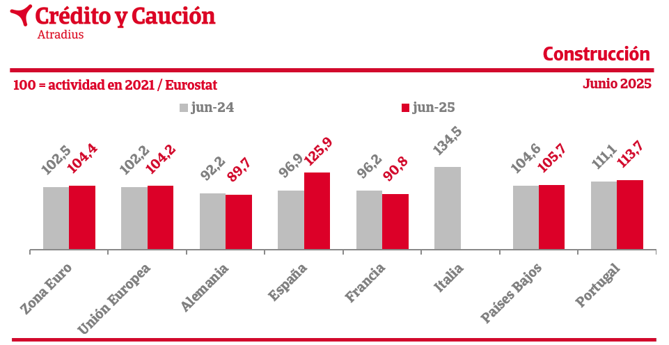 En el mes de junio, el Índice de la Actividad de la Construcción crece en la zona euro.