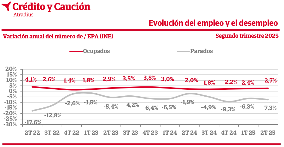 Los datos del segundo trimestre de 2025 de la Encuesta de Población Activa (EPA) muestran un ligero ascenso interanual del número de ocupados.