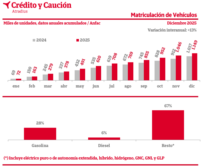 Primera semana de febrero de 2026, Matriculación de Turismos referente al mes de enero de 2026, (Anfac).