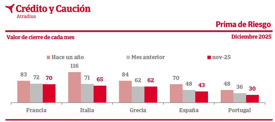 La prima de riesgo puede ser facilmente calculada a partir de la observación del mercado secundario de deuda. La prima de riesgo toma como referencia los bonos a 10 años emitidos por Alemania, la economía percibida como la más segura de la zona euro, y mide el sobreprecio que alcanzan los bonos a 10 años de los otros países en los mercados secundarios de deuda, donde se intercambian libremente. El gráfico muestra la evolución de la prima de riesgo expresada en puntos porcentuales. Se trata, siempre, del valor al cierre de cada mes.