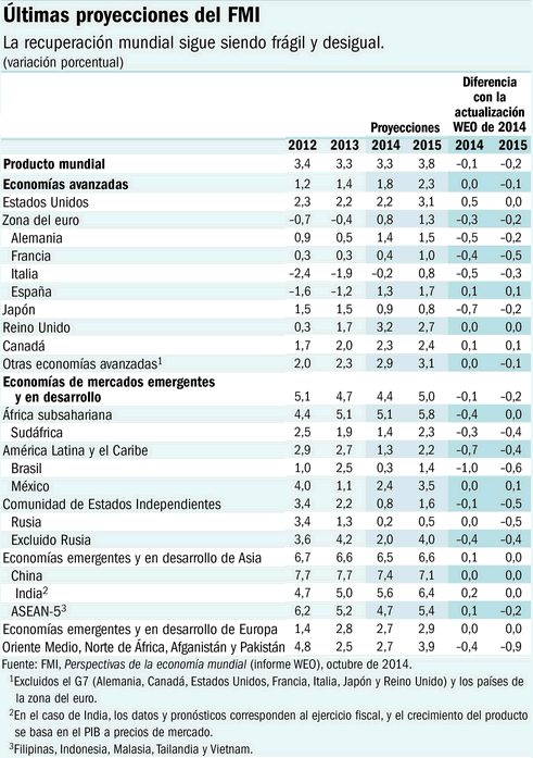 `El deterioro de las perspectivas de crecimiento para 2014 es el resultado de reveses en la actividad económica en las economías avanzadas durante el primer semestre de 2014, y de perspectivas menos optimistas en varios países emergentes´, dice el organismo internacional.