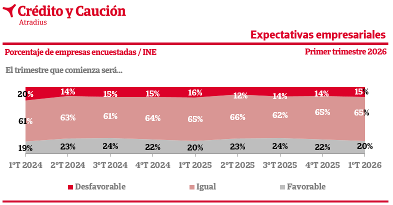El 20% de las empresas españolas considera que la marcha de su negocio será favorable en el primer trimestre de 2026 según el INE.