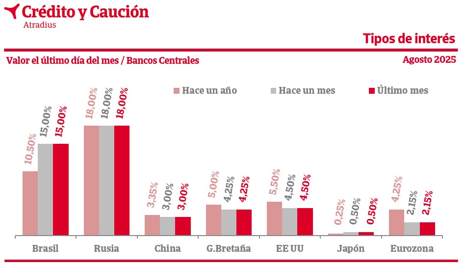 Los principales bancos centrales del mundo mantuvieron los tipos de interés de referencia en agosto.
