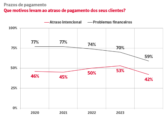 Desde a pandemia, a imposição de prazos mais longos por parte das pequenas e médias empresas tem sido progressivamente reduzida. As grandes empresas também melhoraram significativamente o seu comportamento enquanto clientes em 2024.