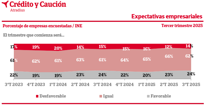 El 24% de las empresas españolas considera que la marcha de su negocio será favorable en el tercer trimestre de 2025 según el INE.