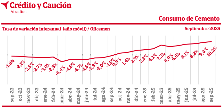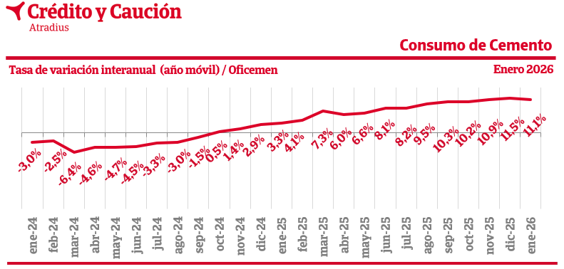 Los datos de evolución de consumo de cemento son difundidos cada mes en los informes estadísticos de avance nacional que publica la Agrupación de Fabricantes de Cemento de España (Oficemen).
