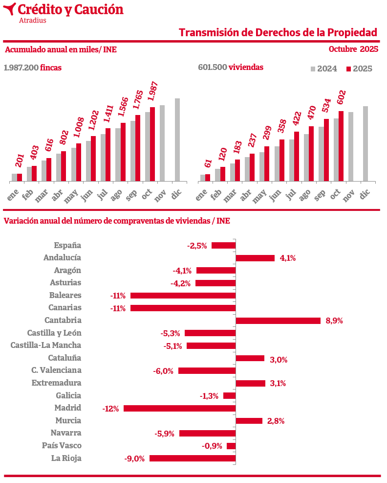 19 de enero 2026, datos revisados hasta noviembre de 2025 de la Estadística de Transmisión de Derechos de la Propiedad, (INE).