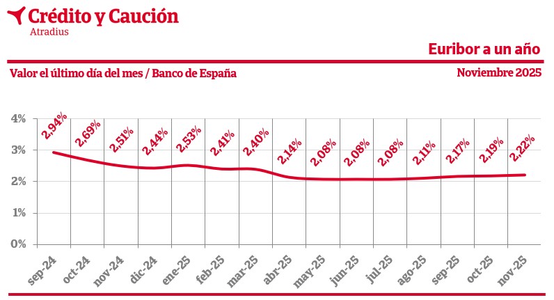 El Banco de España confirma que el Euríbor a 12 meses, referencia en la mayoría de préstamos hipotecarios a tipo variable en España, subió en noviembre al 2,217%.