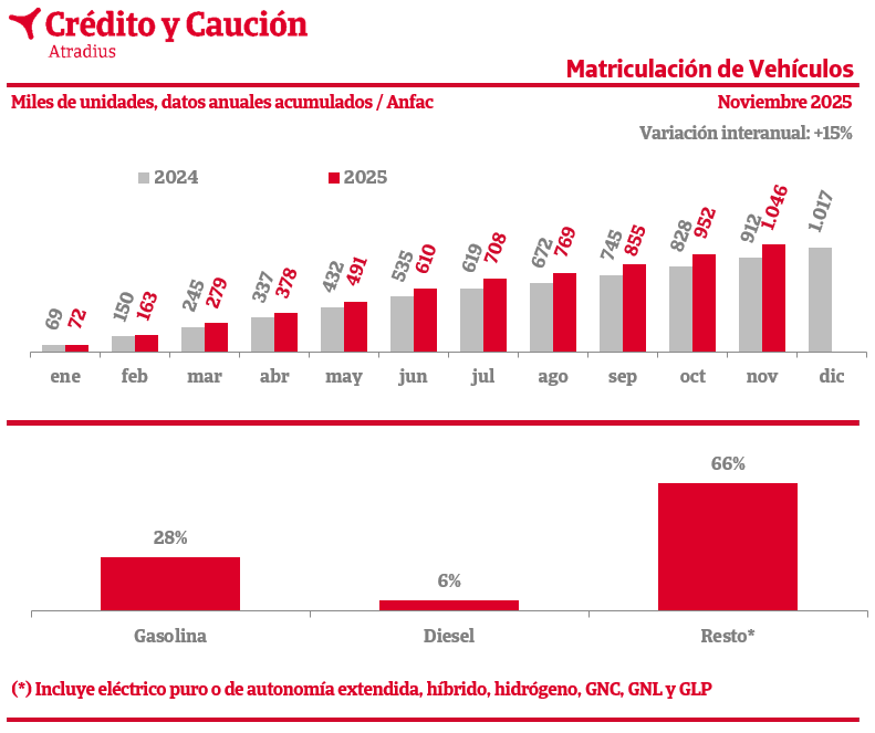 Primera semana de enero de 2026, Matriculación de Turismos referente al mes de diciembre de 2025, (Anfac).