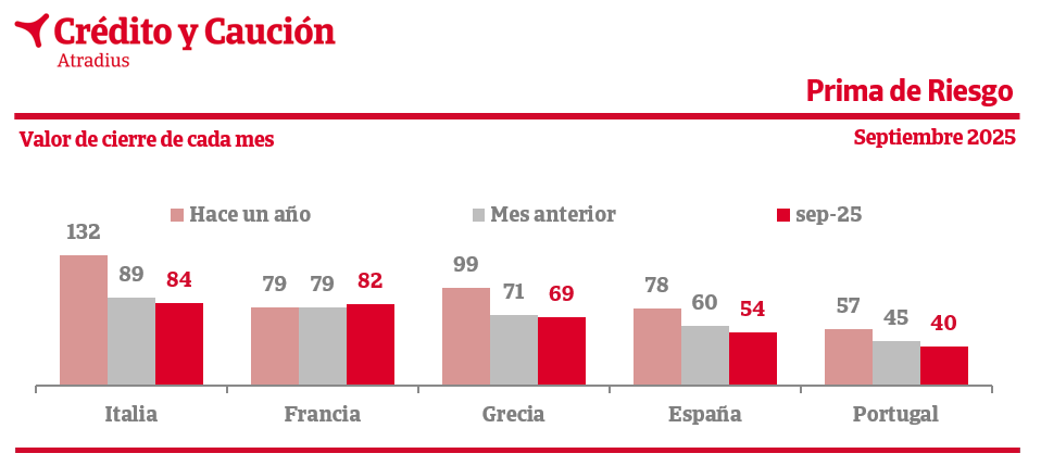 La prima de riesgo puede ser facilmente calculada a partir de la observación del mercado secundario de deuda. La prima de riesgo toma como referencia los bonos a 10 años emitidos por Alemania, la economía percibida como la más segura de la zona euro, y mide el sobreprecio que alcanzan los bonos a 10 años de los otros países en los mercados secundarios de deuda, donde se intercambian libremente. El gráfico muestra la evolución de la prima de riesgo expresada en puntos porcentuales. Se trata, siempre, del valor al cierre de cada mes.